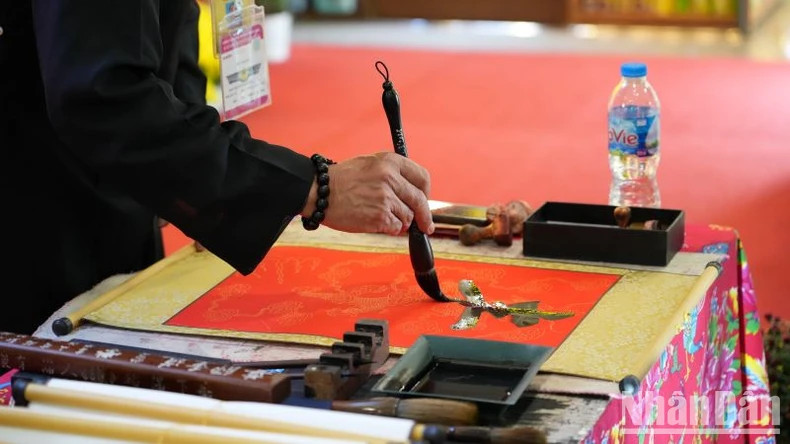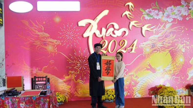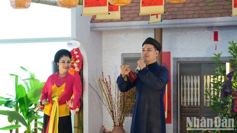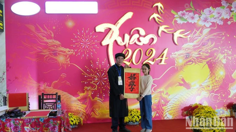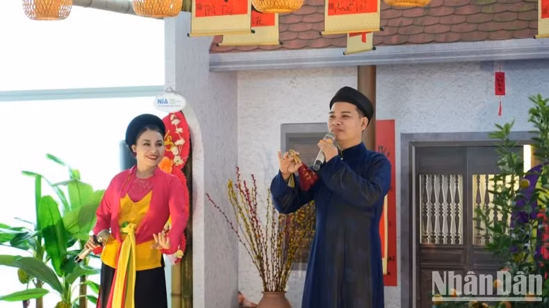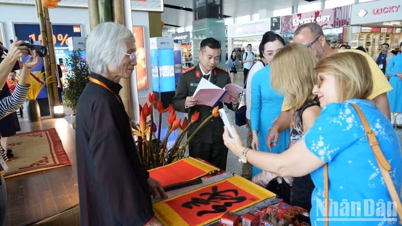 The traditional art space displayed right in the area before the flight helps passengers understand and be proud of Vietnamese culture in the early days of the new Spring.