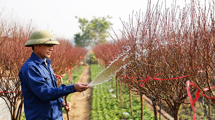 “From the moment we are preparing to pluck the leaves to the time of selling peach blossoms, we have to monitor the weather continuously. If it is too cold, it must be better fertilised, but this weather is normal, there is no need to fertilise. If the tree is a little younger, you must water it more,” said Hanh.