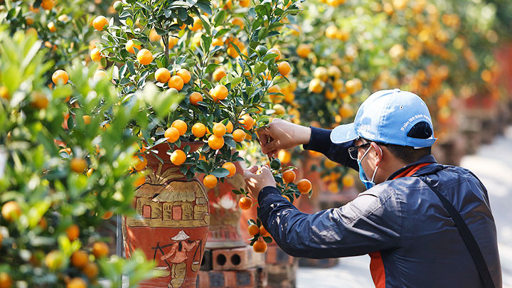 Not only in Hanoi, but kumquat tree growers in many provinces and cities are also busy pruning the leaves and beautifying the trees. The work of nurturing the lush trees so that the fruits are ripe and flowering on the occasion of Tet holiday requires a lot of care.