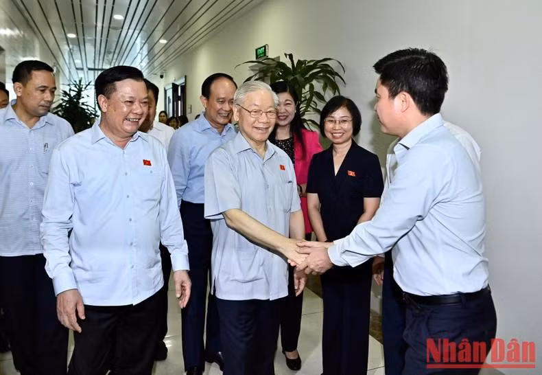 | Party chief Nguyen Phu Trong attends the meeting with voters in Hanoi's constituency No.1. |