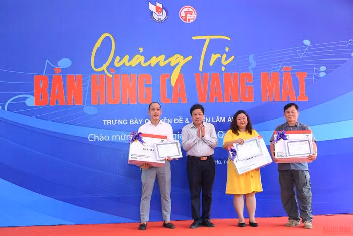 Vice Chairman of Quang Tri provincial People’s Committee Hoang Nam presents the first prize to the author with the most outstanding press work.