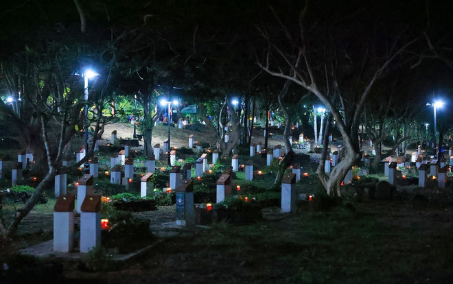 Candles are lit at Hang Duong Cemetery on May 3 evening in tribute to those who fell down for national liberation. (Photo: VNA)