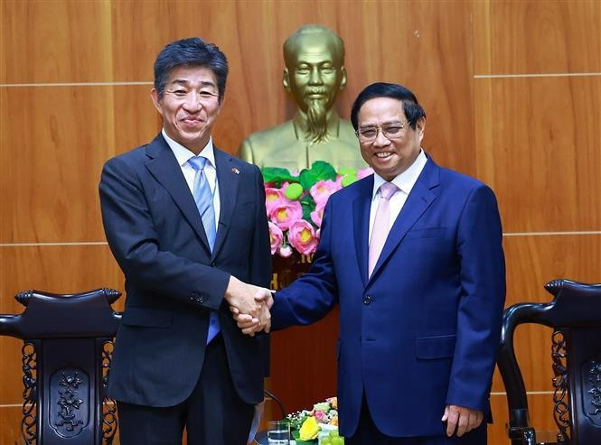 PM Pham Minh Chinh (R) meets with Nakagawa Tetsuyuki, General Director of AEON Mall Vietnam Co. Ltd., (Photo: VNA)