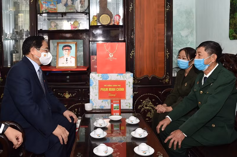 On this occasion, PM Pham Minh Chinh also visited and presented gifts to a number of families of revolution contributors within the province - the hometown of legendary General Vo Nguyen Giap.