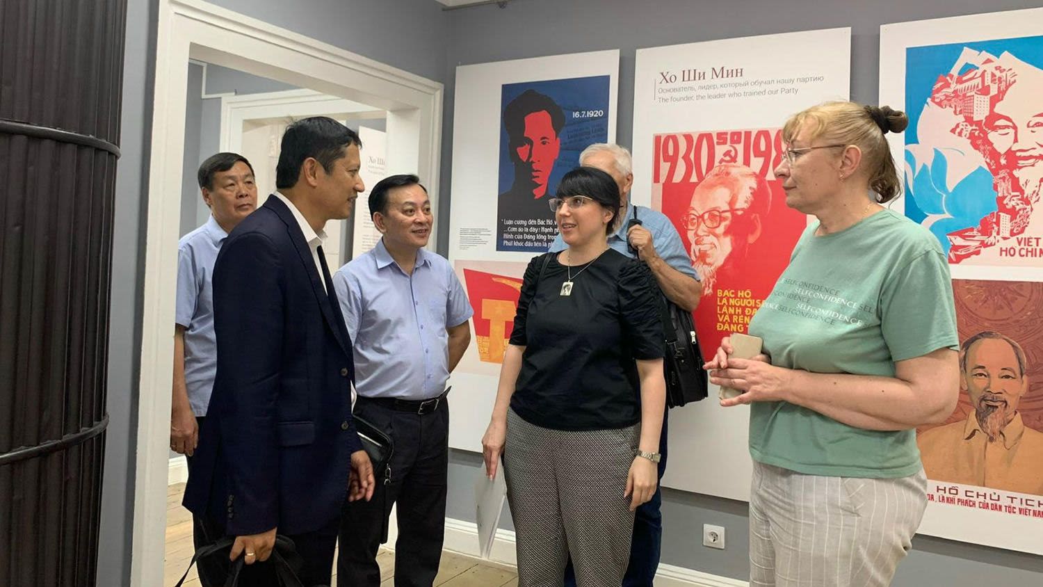 Nguyen Quoc Hung at the opening ceremony of the exhibition themed “Portrait of Ho Chi Minh - Perspective from propaganda posters: 1969-2011” held in Ulyanovsk City — V.I. Lenin’s hometown — in 2024.