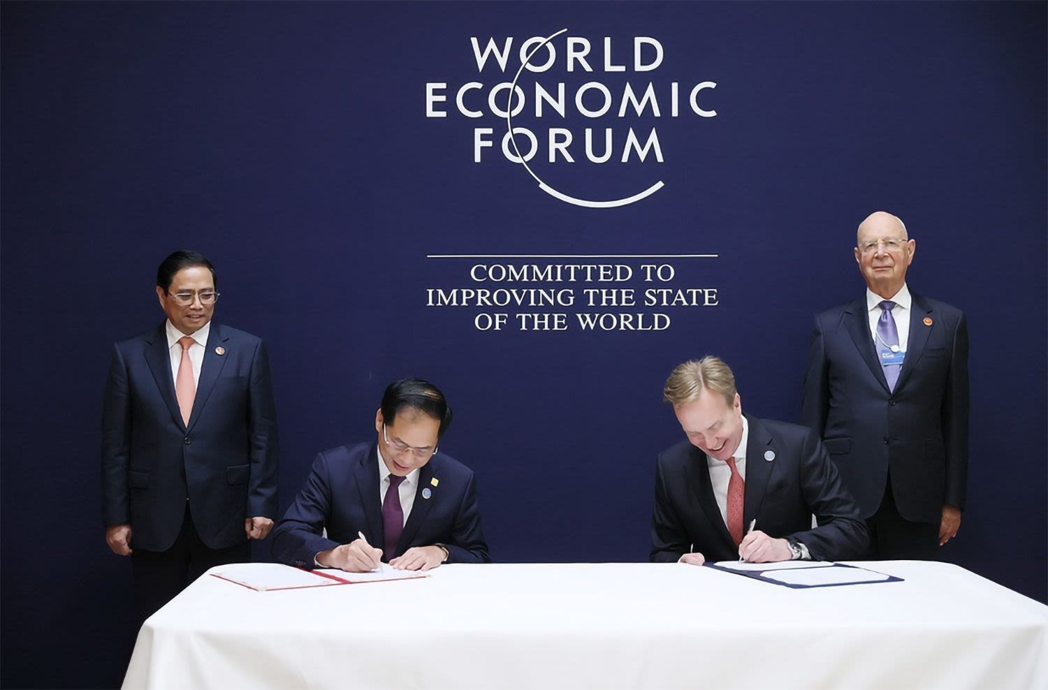 On June 26, 2023, at the WEF Tianjin Meeting, the two sides signed a Memorandum of Understanding on Viet Nam–WEF cooperation for the 2023–2026 period, witnessed by Prime Minister Pham Minh Chinh and Professor Klaus Schwab. The MoU provides a crucial framework for enhancing bilateral cooperation in the new period, focusing on six key areas: (i) Innovation in food systems; (ii) Skills development for innovation and green transformation; (iii) Net-zero-oriented industrial clusters; (iv) Plastic action initiatives, including the Global Plastic Action Partnership; (v) Finance for renewable energy transition; (vi) Digital transformation cooperation and the establishment of the fourth industrial revolution centre (C4IR).