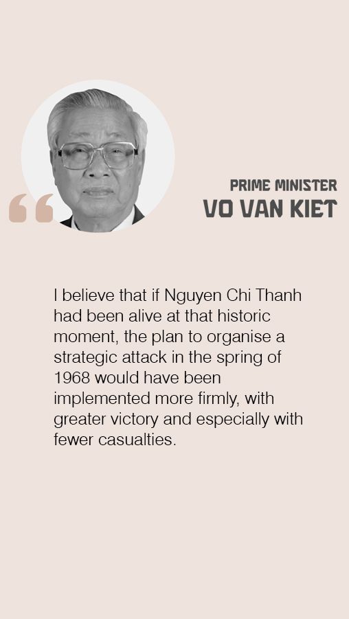 I believe that if Nguyen Chi Thanh had been alive at that historic moment, the plan to organise a strategic attack in the spring of 1968 would have been implemented more firmly, with greater victory and especially with fewer casualties.