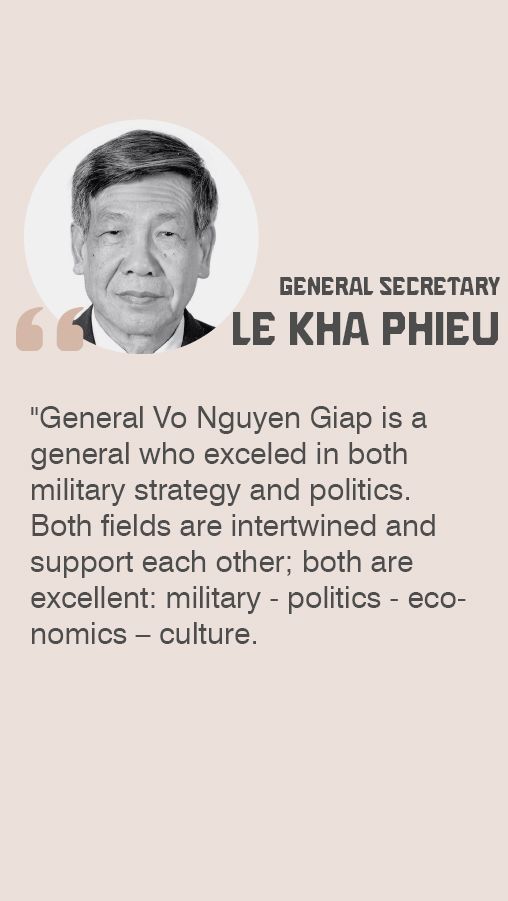 "General Vo Nguyen Giap is a general who exceled in both military strategy and politics. Both fields are intertwined and support each other; both are excellent: military - politics - economics – culture.