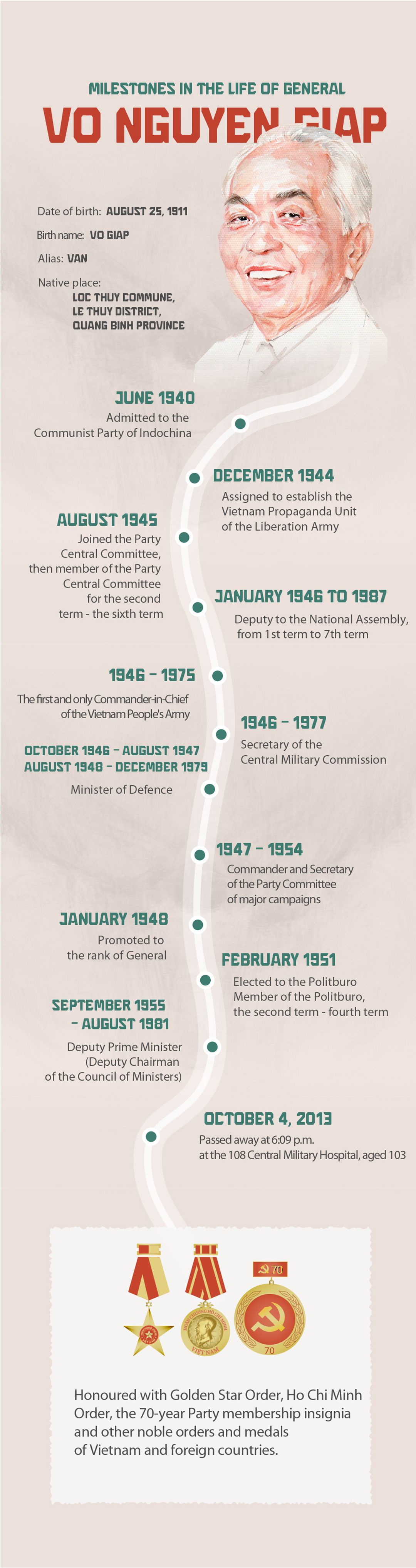 His name and career will forever be engraved in the history of the nation, a famous general in world history, contributing to enriching Vietnamese military art, contributing to the formation and development of military doctrine — the unique people’s war strategy of Vietnam in the Ho Chi Minh era. He was also the first and only Commander-in-Chief of the Vietnam People’s Army, the first general, and the general who defeated the most foreign generals.