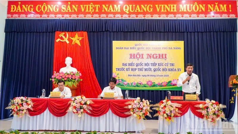 Members of the Delegation of National Assembly Deputies of Da Nang City record voters’ petitions in Dien Ban Bac Ward on October 6, 2025.