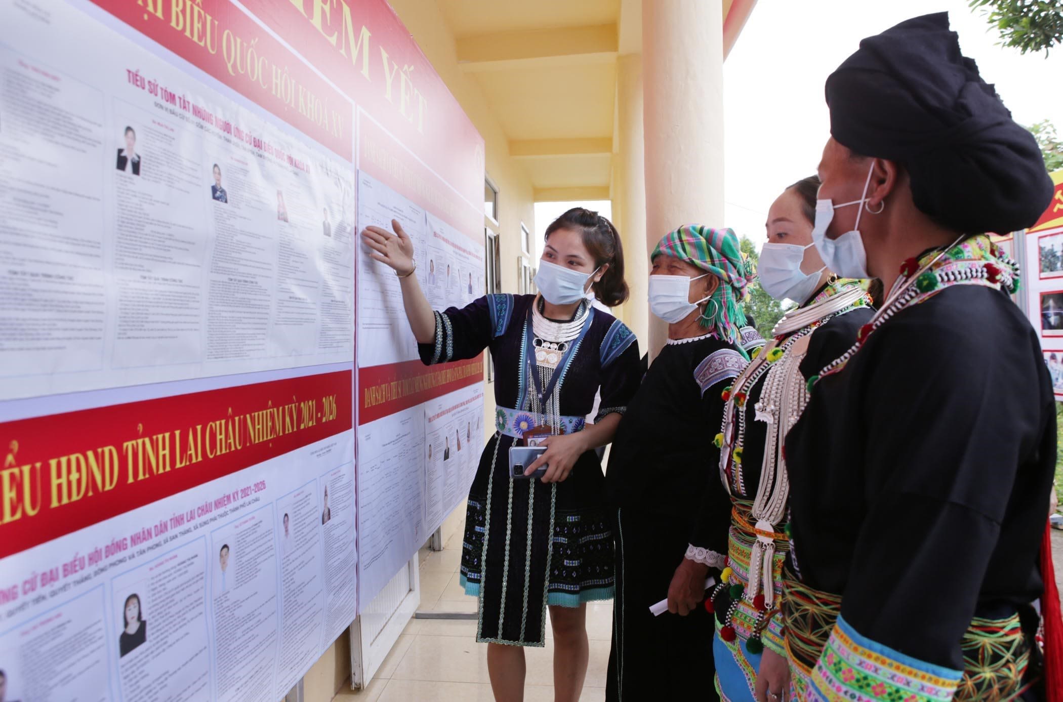 Voters in Lai Chau Province read personal information of candidates for the National Assembly and People’s Councils before casting their ballots.