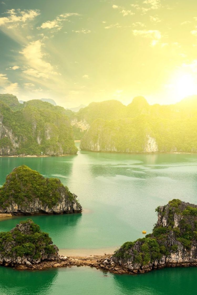 With 1,133 limestone islands of various shapes and sizes, including 775 limestone islands in Ha Long Bay and 358 limestone islands in the Cat Ba archipelago, covered with rich vegetation on the sparkling emerald water surface, Ha Long Bay - Cat Ba Archipelago appears like a chessboard of precious stones, with peaceful, smooth, white sand beaches.