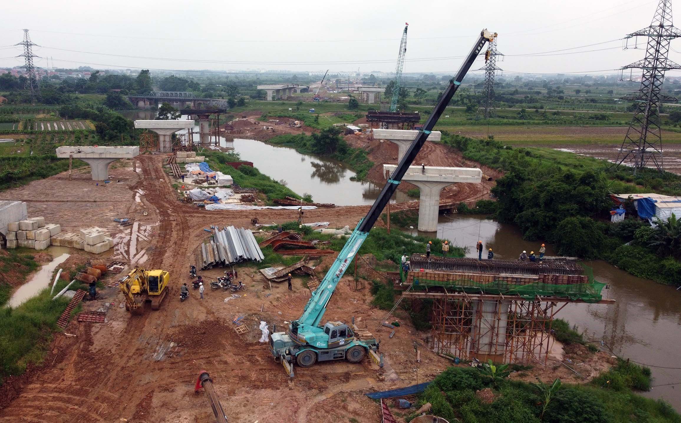 Construction of a railway overpass in package No.8 of Ring Road 4 - Capital Region in Me Linh District. Photo: Huy Hung