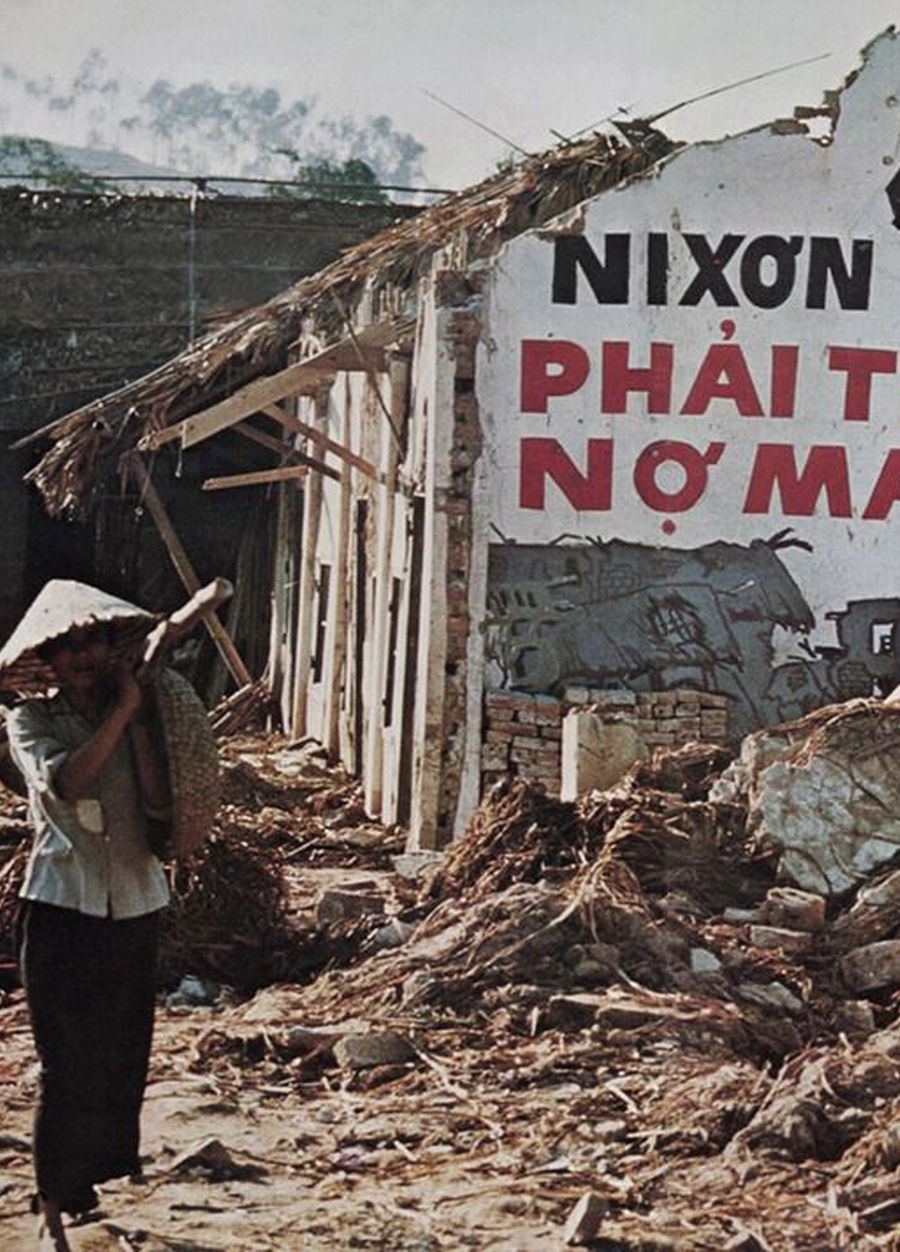 People in Kham Thien Street marked their first Tet (Lunar New Year) Festival after the catastrophic bombing. Like their hundreds of neighbours, Giac and his young sister welcomed the new year in temporary houses, littered with bricks and bomb craters. Incense sticks flickered in the houses as evidence of the pain that had not yet healed.