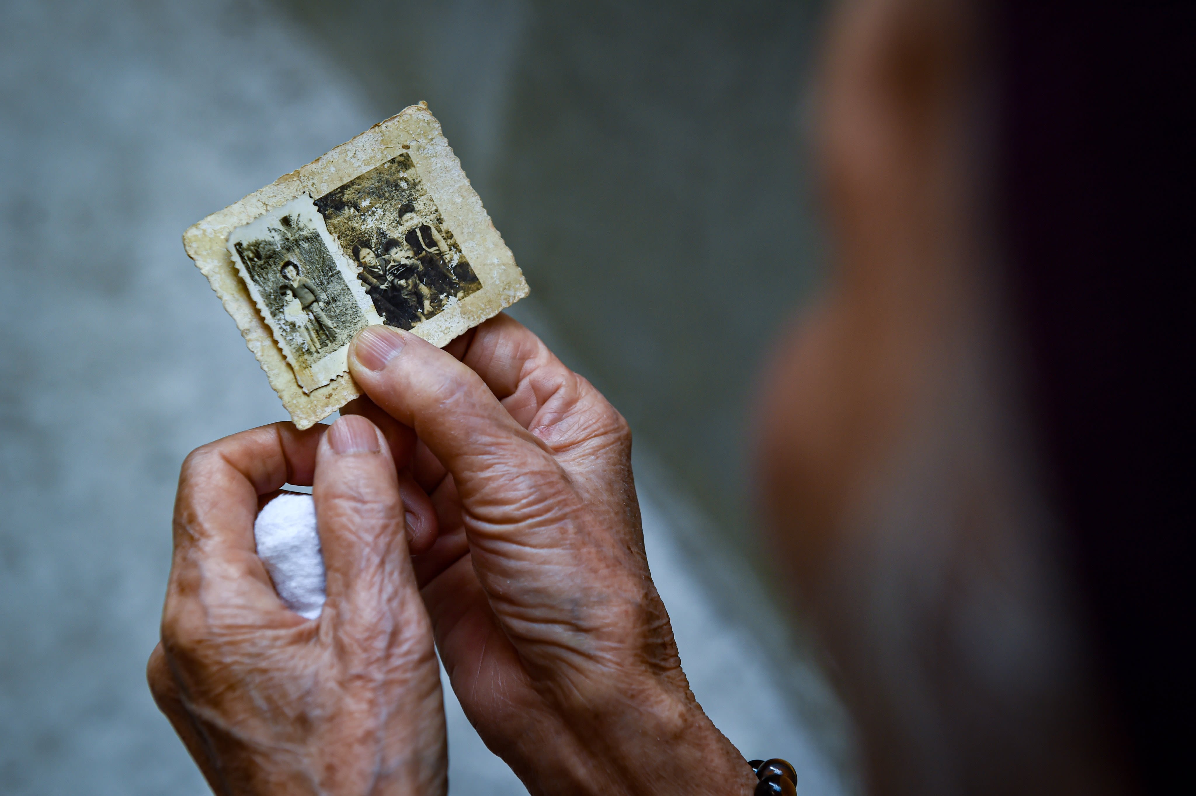 Hoa holds a photo taken in the afternoon when she brought her children back home to celebrate Tet 50 years ago. (Photo: THANH DAT)
