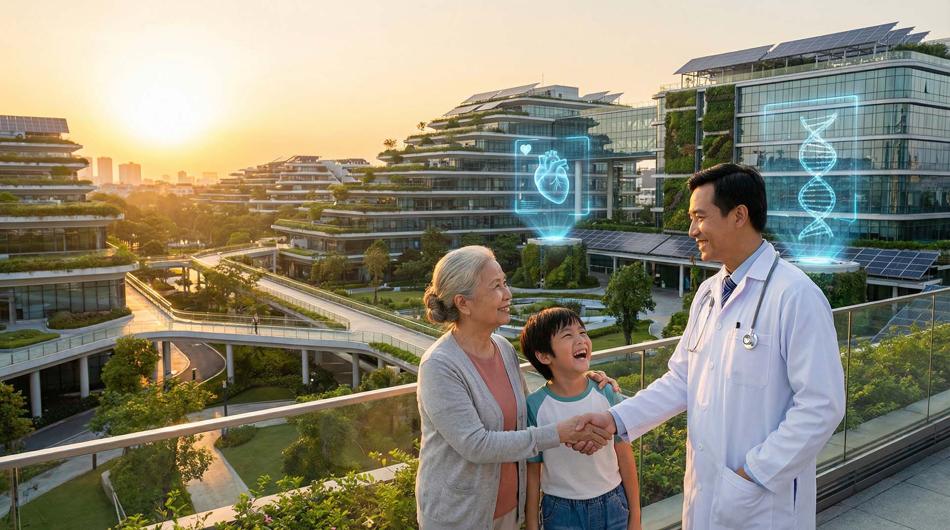 • Striving for a high-quality living environment; health indicators and essential health service coverage to be on par with developed countries in the region and worldwide.