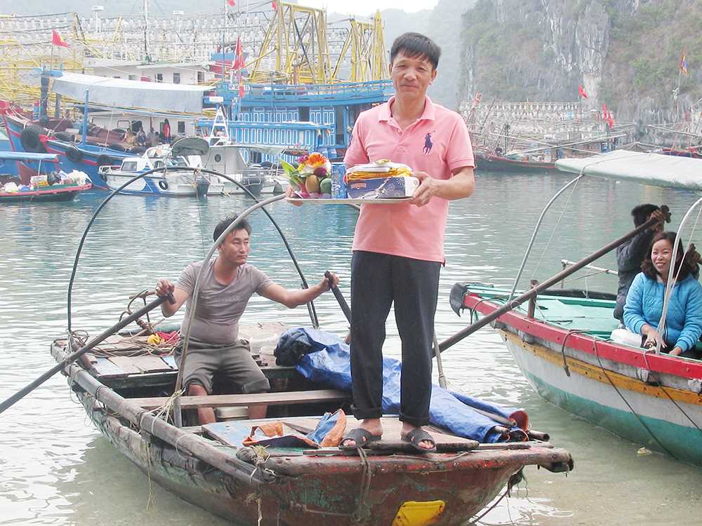 Fishermen on Ha Long Bay prepare offerings to pay gratitude to the gods of the sea at the end of the year. (Photo: Quang Ninh Provincial Online Portal)