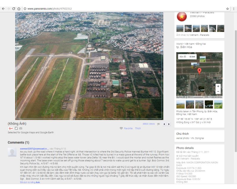 At one time my oldest granddaughter wanted to do a school project about Vietnam. I went back onto Google Earth and […] left a note about a mass grave that was on the Bien Hoa Air Base. I want to at least let Vietnamese know of a grave even though they may have already found it. My post read, “When you look up the road where it makes a hard right. At that intersection is where the third Security Police managed Bunker Hill 10. Significant ballet took place hereat the start of the Tet Offensive 1968. At this location is a mass grave of approx 150 Vietnamese soldiers buried on or about February 2, 1968 as a result of the Tet 1968 battle”.