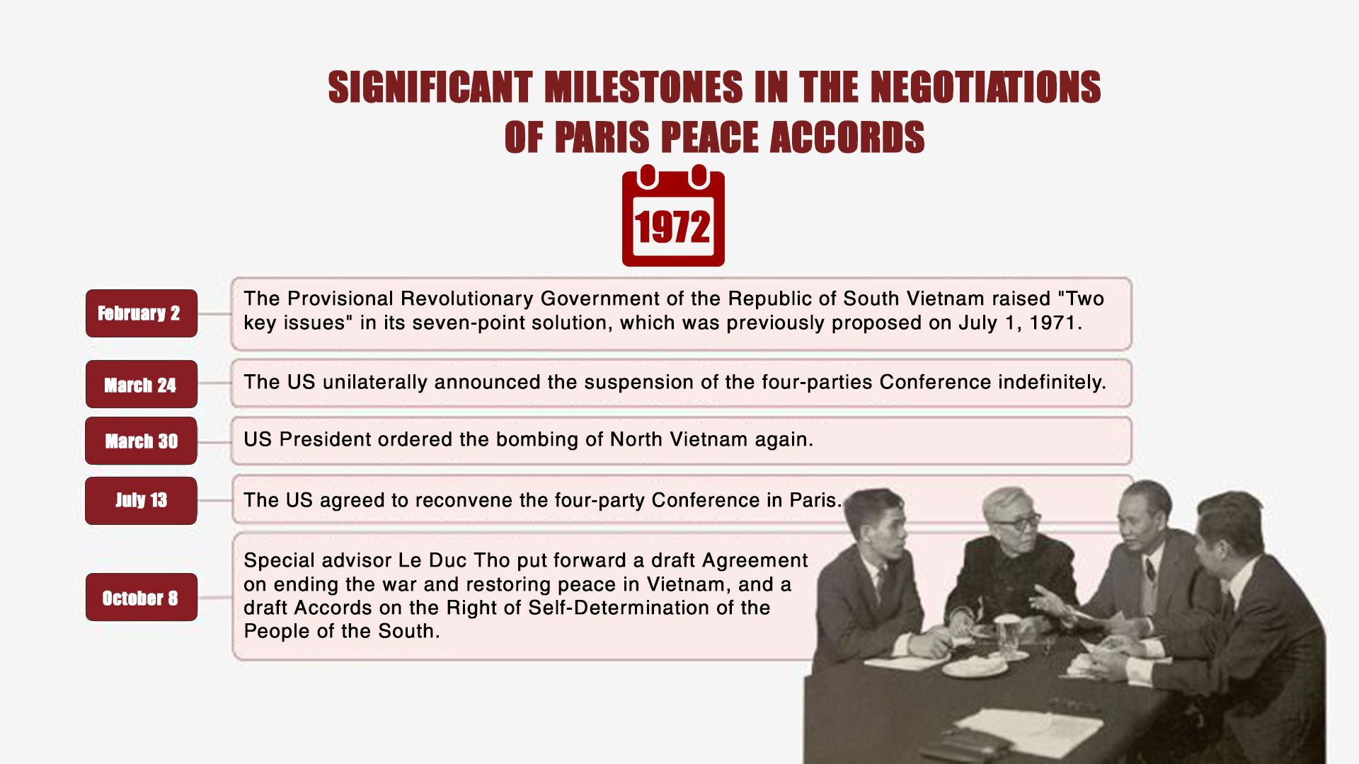 Let's look back at the important milestones in the negotiation process and signing of the Paris Peace Accords.