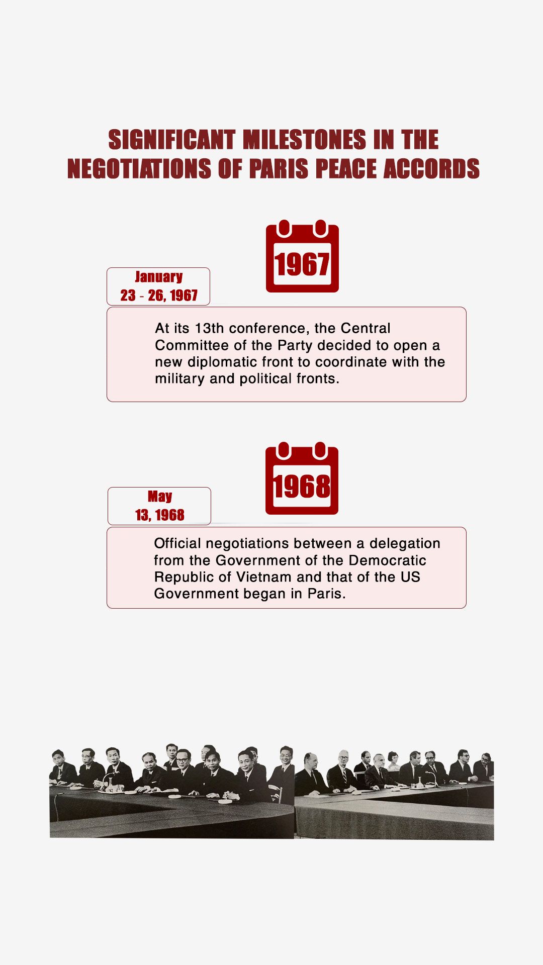 Sources of reference: Party Commission of Communication and Education; Ministry of Foreign Affairs; National Archives Centre III; Vietnam Union of Friendship Organisations; Nhan Dan (People) Newspaper; Vietnam News Agency; “Paris Conference on Vietnam: A look back, 1968-1973” (World Publishing House); “Paris Conference - The Door to Peace” (Truth National Political Publishing House); “Paris Agreement 1973 – A turning point towards Peace” (Vietnam News Agency Publishing House).