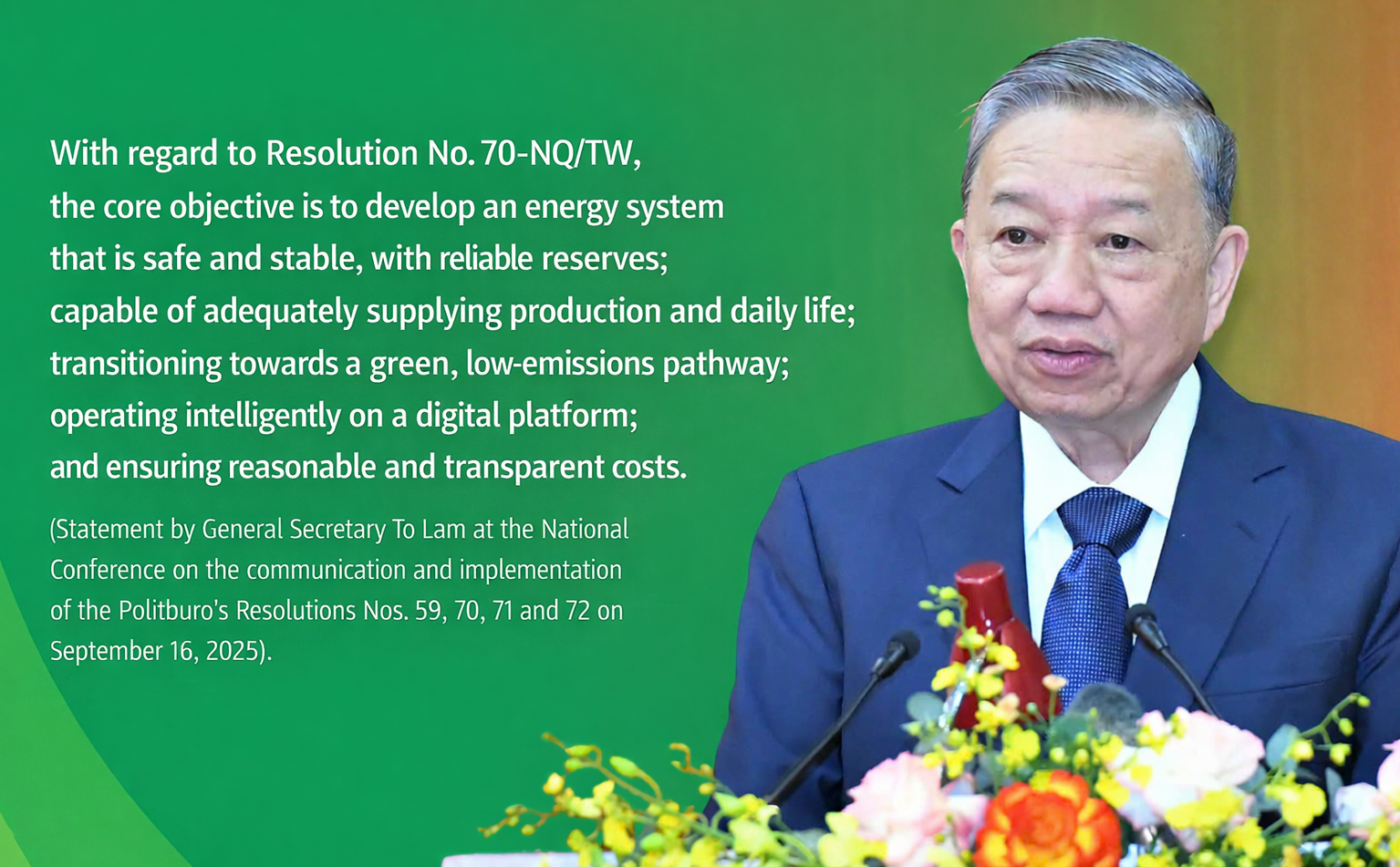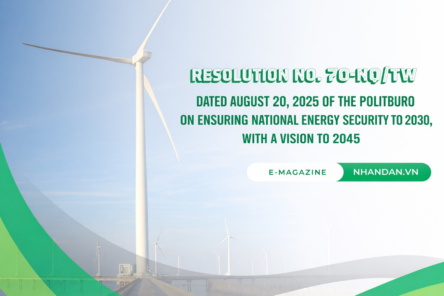 Resolution No. 70-NQ/TW, issued by the Politburo on August 20, 2025, is a significant strategic resolution that reflects the Party’s long-term vision and proactive thinking in ensuring national energy security in the new context. Resolution No. 70-NQ/TW builds upon and further develops the orientations set out in Resolution No. 55-NQ/TW (2020) on the national energy development strategy, while at the same time supplementing new contents that are aligned with the socio-economic context, growth requirements, global integration and international commitments.