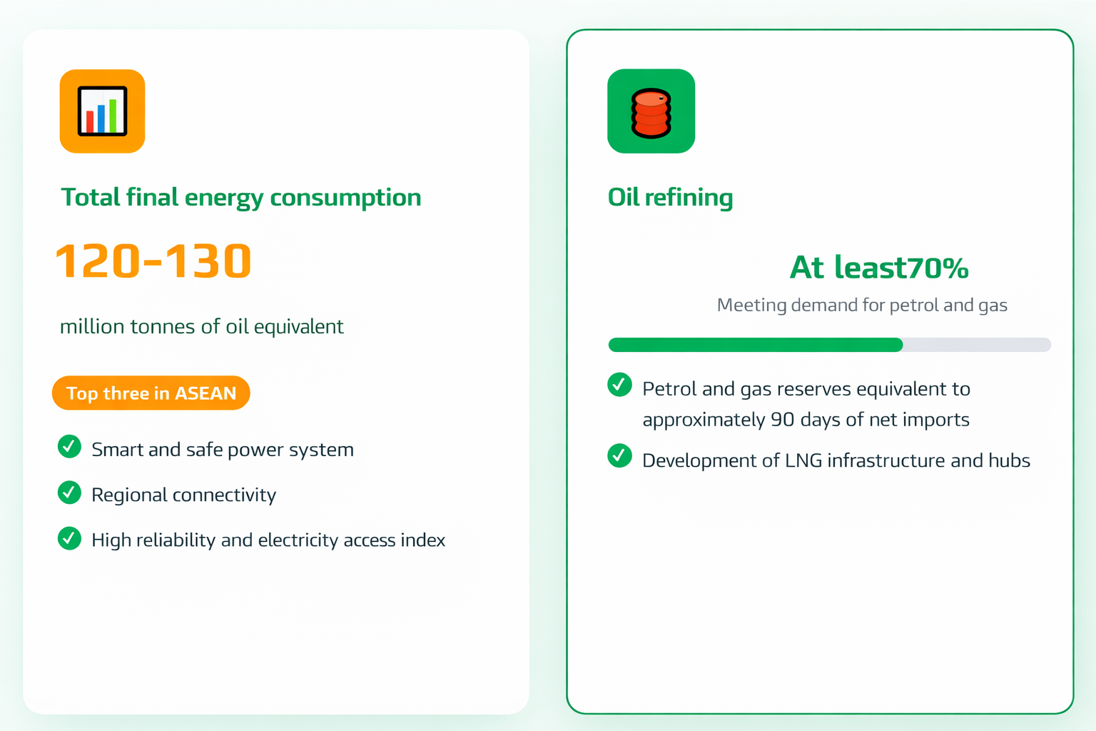 - Develop the energy sector in a balanced and harmonious manner across sub-sectors, with synchronous and smart infrastructure, reaching an advanced level within ASEAN.