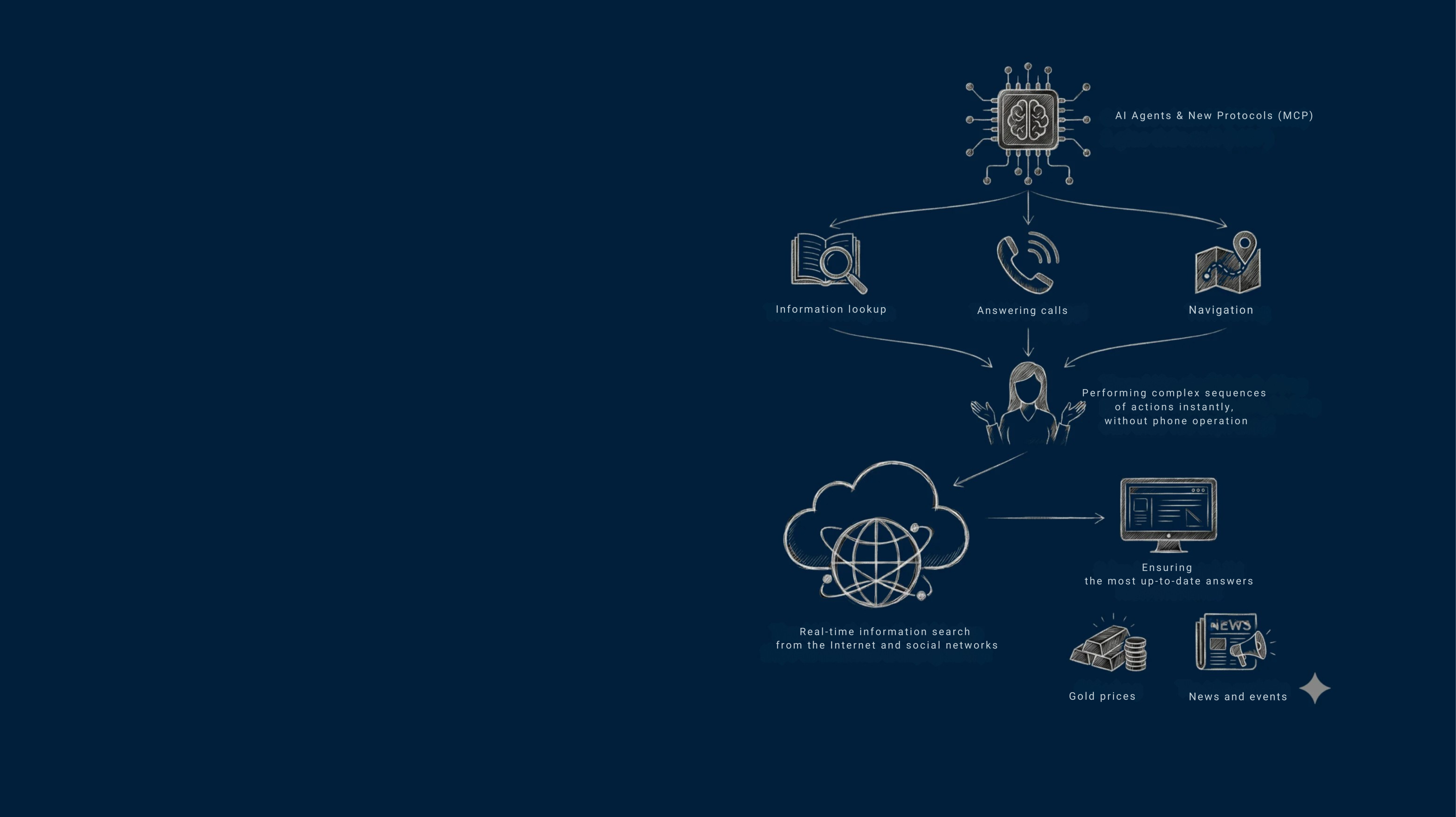 AI agents equipped with new connectivity protocols (such as MCP) can perform complex sequences of actions instantly, for example, looking up information, answering calls, or finding directions without the user having to operate the phone. The ability to search for real-time information from the Internet and social networks ensures the most up-to-date answers, relevant to queries such as gold prices or news and events.