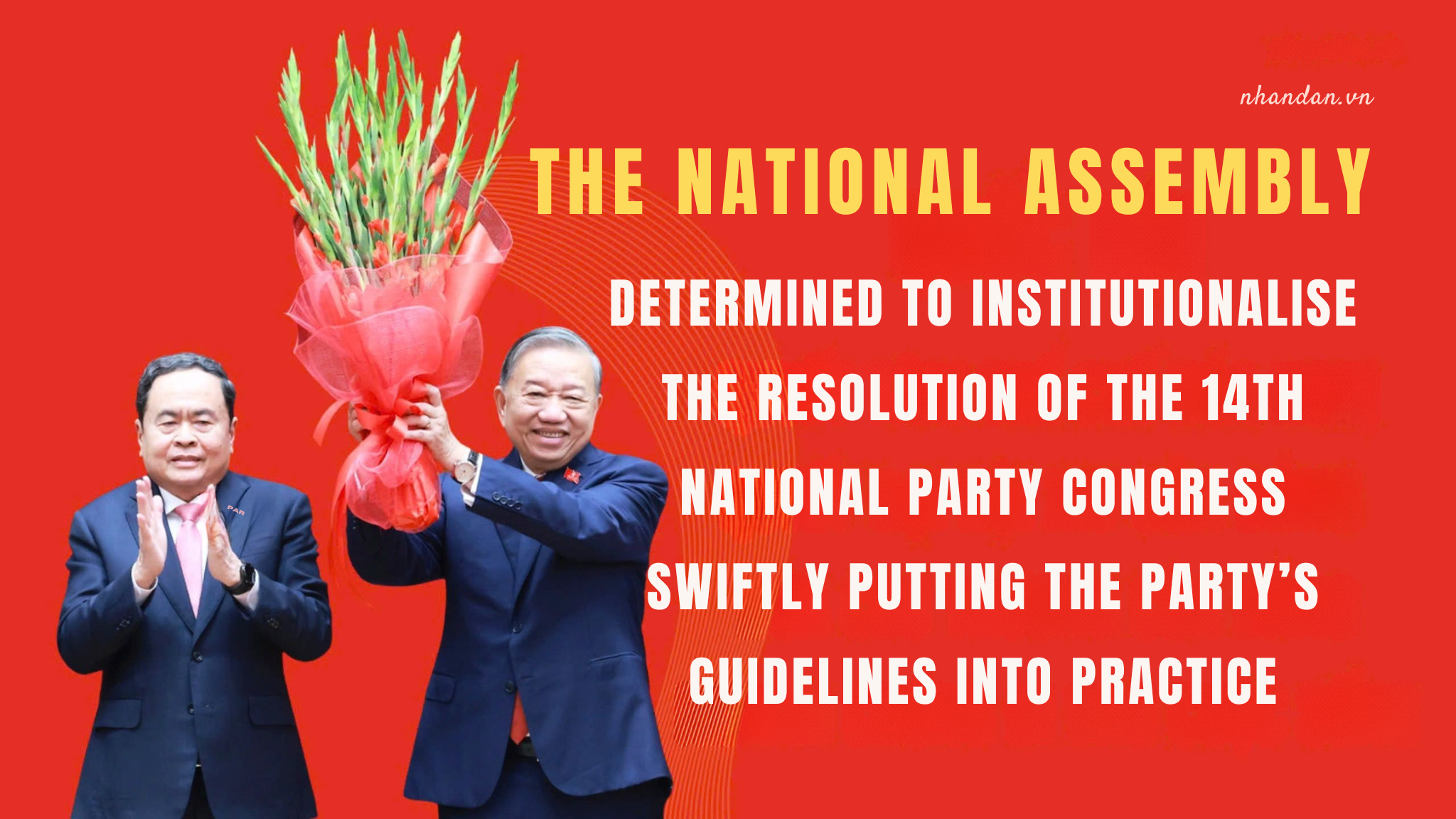 The National Assembly is determined, with the highest resolve, to successfully implement the Resolution of the 14th National Party Congress, contributing together with the entire Party, the entire people, and the entire armed forces to realising the aspiration for a strong, prosperous,and happy Viet Nam in the new era.