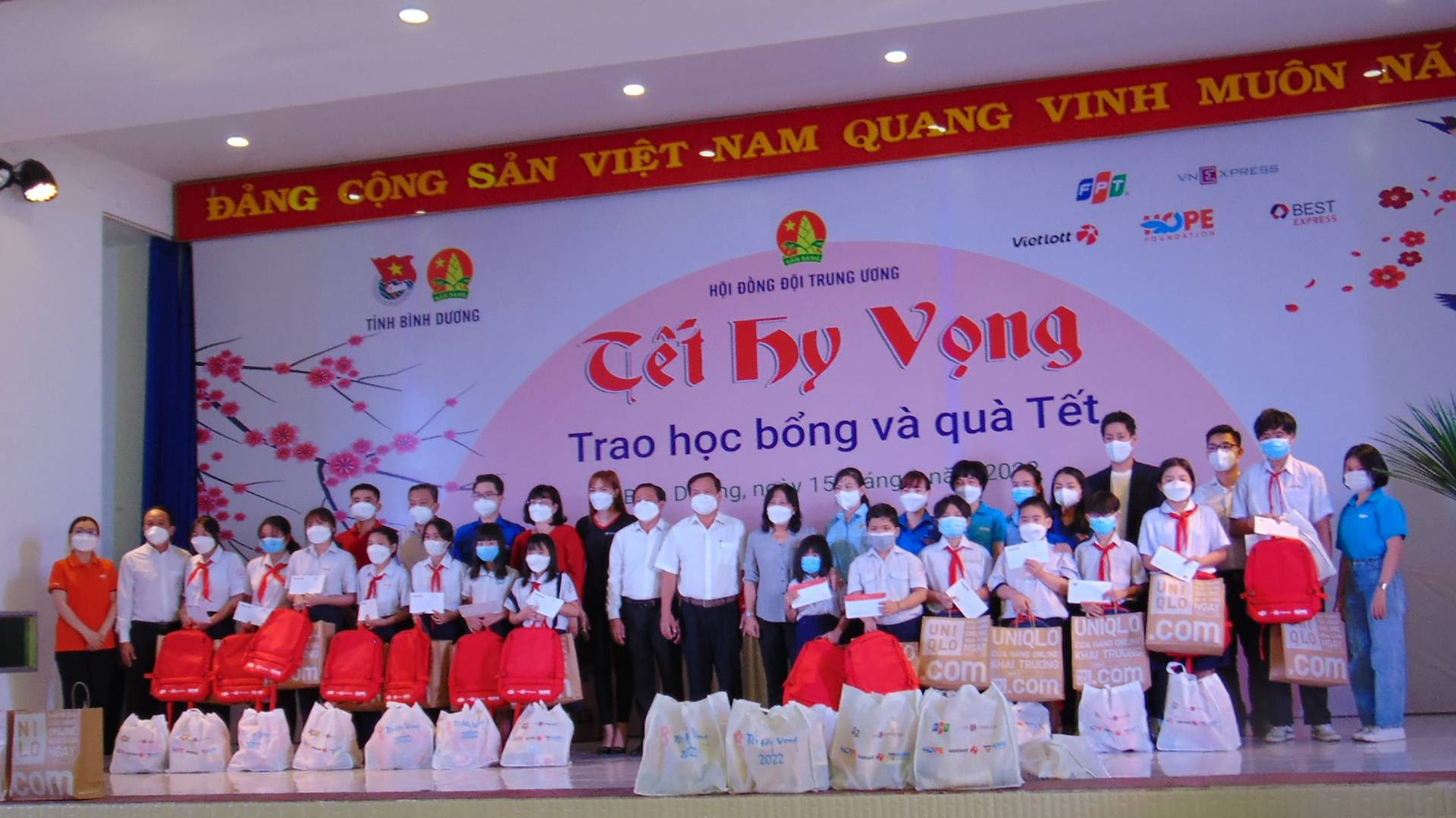 The Ho Chi Minh Communist Youth Union of Binh Duong province, in coordination with the Central Council of the Ho Chi Minh Young Pioneers’ Organisation, present gifts and scholarships to orphans due to COVID-19 in Di An city, Binh Duong province.
