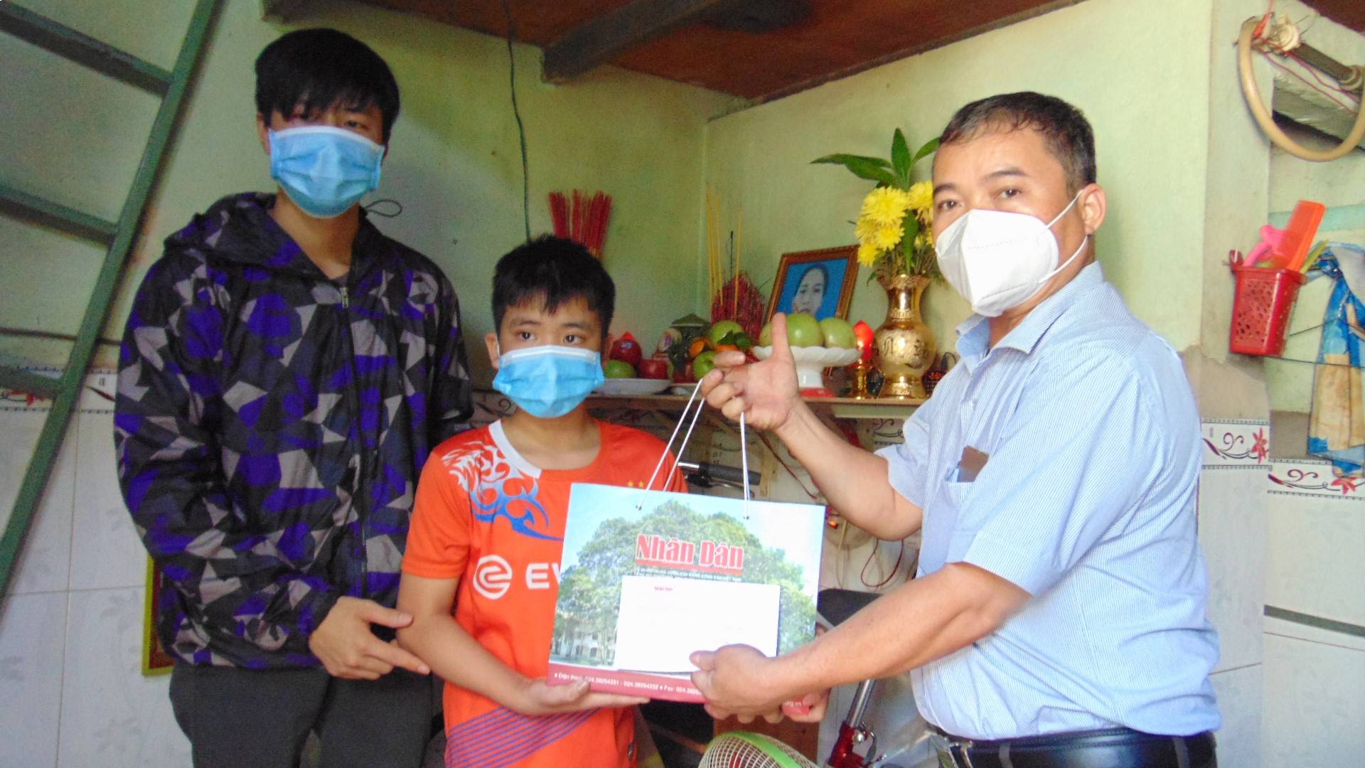 Nhan Dan Newspaper reporter presents gifts to orphans Ha and Nam due to COVID-19.