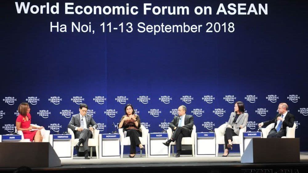 Within the framework of the World Economic Forum on ASEAN 2018 (WEF ASEAN 2018), a discussion session titled “Asia Economic Outlook” took place on September 12, 2018, at the National Convention Centre in Ha Noi. (Photo: VNA)