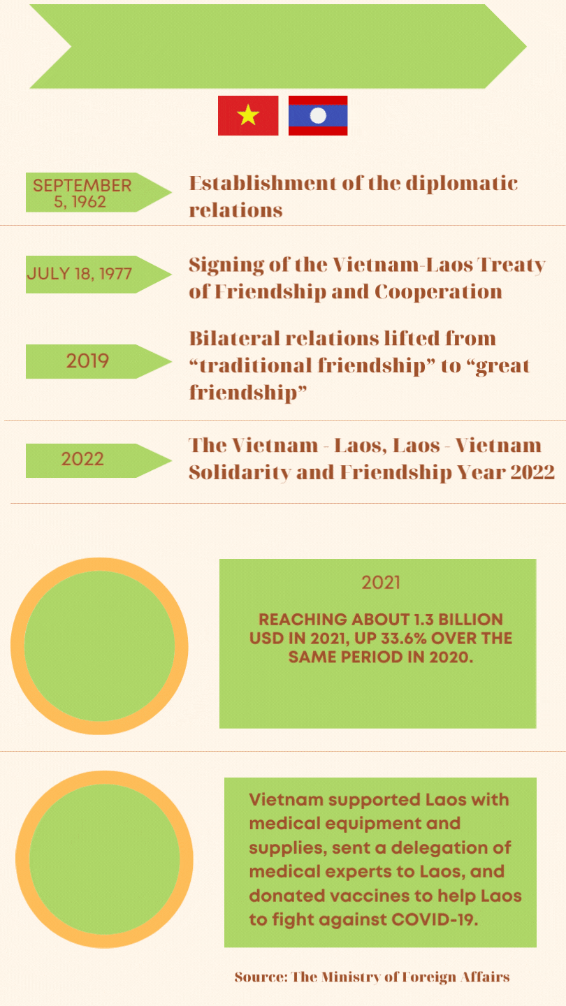 In order to celebrate the 60th anniversary of the establishment of diplomatic relations between the two countries and the 45th anniversary of the signing of the Vietnam-Laos Treaty of Friendship and Cooperation, a range of practical activities have been held in both countries within the framework of the Vietnam - Laos, Laos - Vietnam Solidarity and Friendship Year 2022.