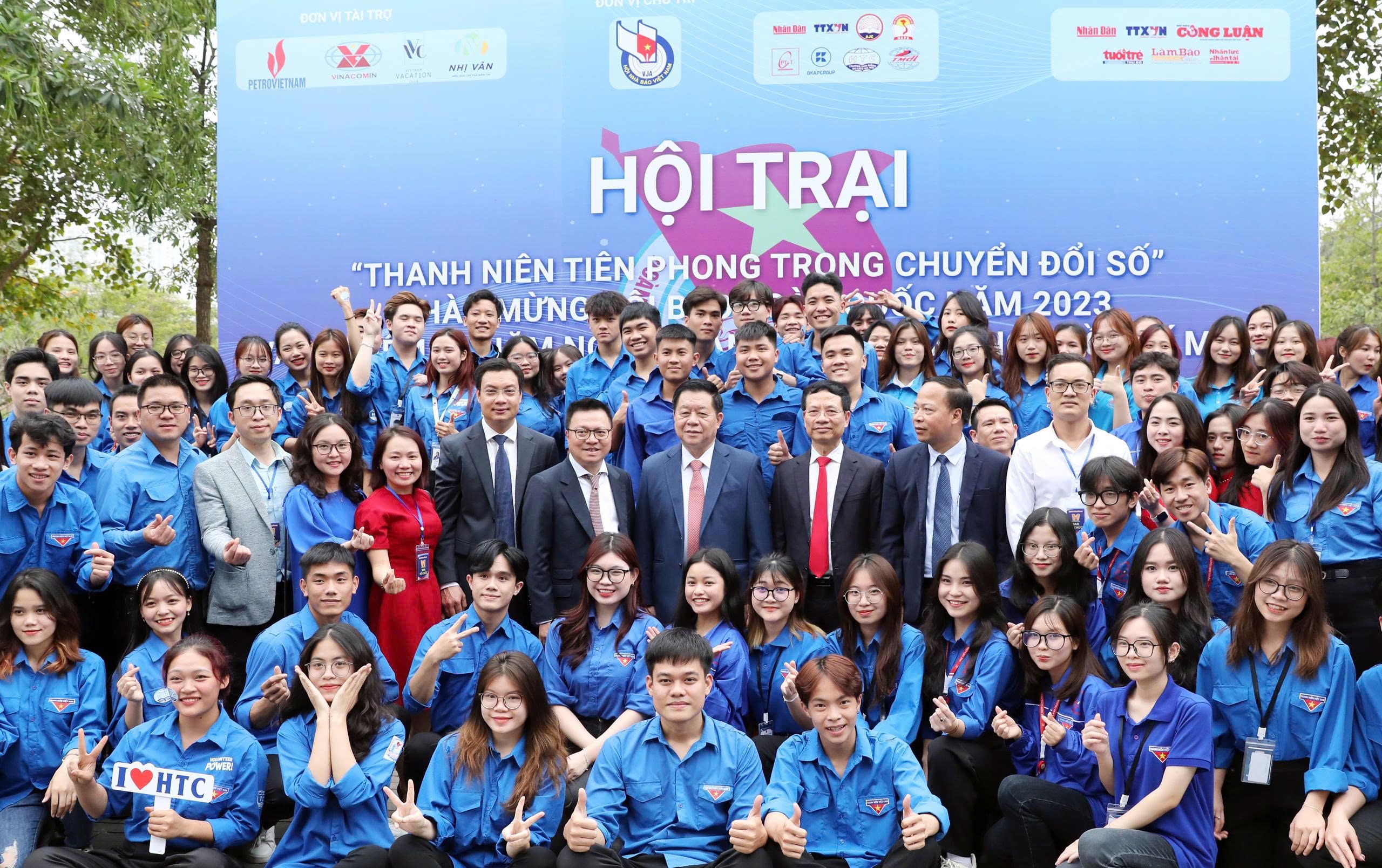 Politburo Member, Secretary of the Party Central Committee (PCC), and Head of the PCC’s Commission for Communications, Education and Mass Mobilisation Nguyen Trong Nghia; member of the PCC Le Quoc Minh, who is also Editor-in-chief of Nhan Dan Newspaper, Chairman of the Viet Nam Journalists’ Association and Deputy Head of the PCC’s Commission for Communciations, Education and Mass Mobilisation; and other leaders from the press and journalism associations pose for a photo with journalism students at the 2023 National Press Festival.