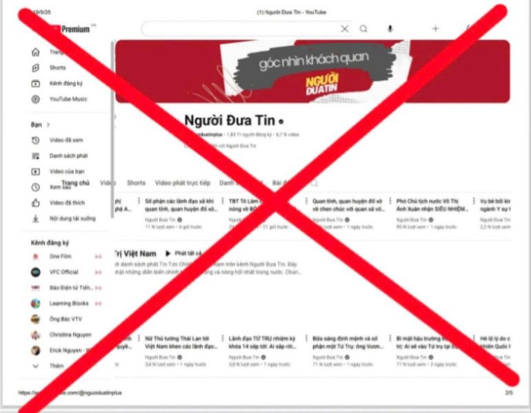YouTube channel "Nguoi Dua Tin" publishing more than 6,700 videos distorting organizations and individuals in the political system discovered by the police in early June.