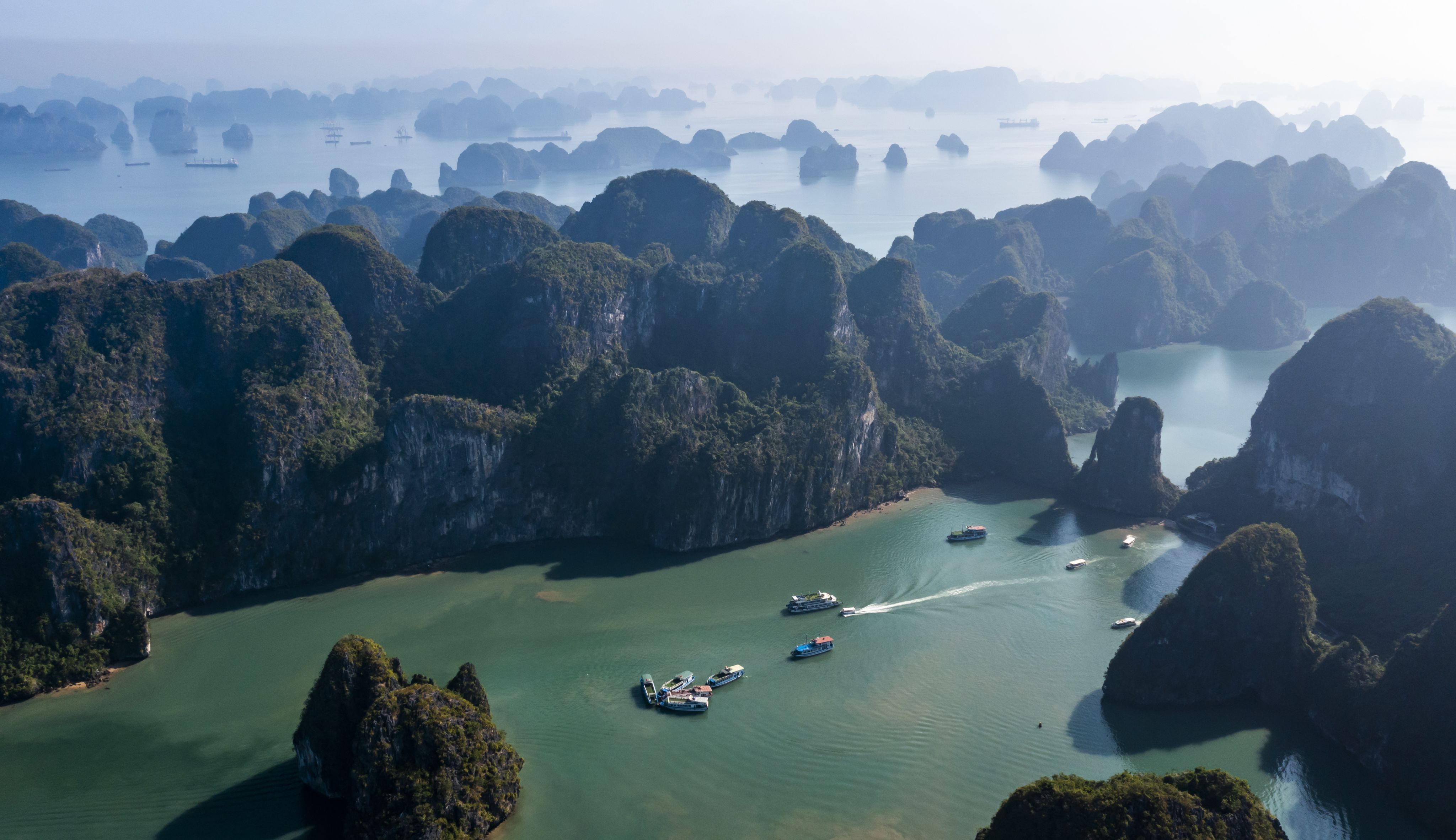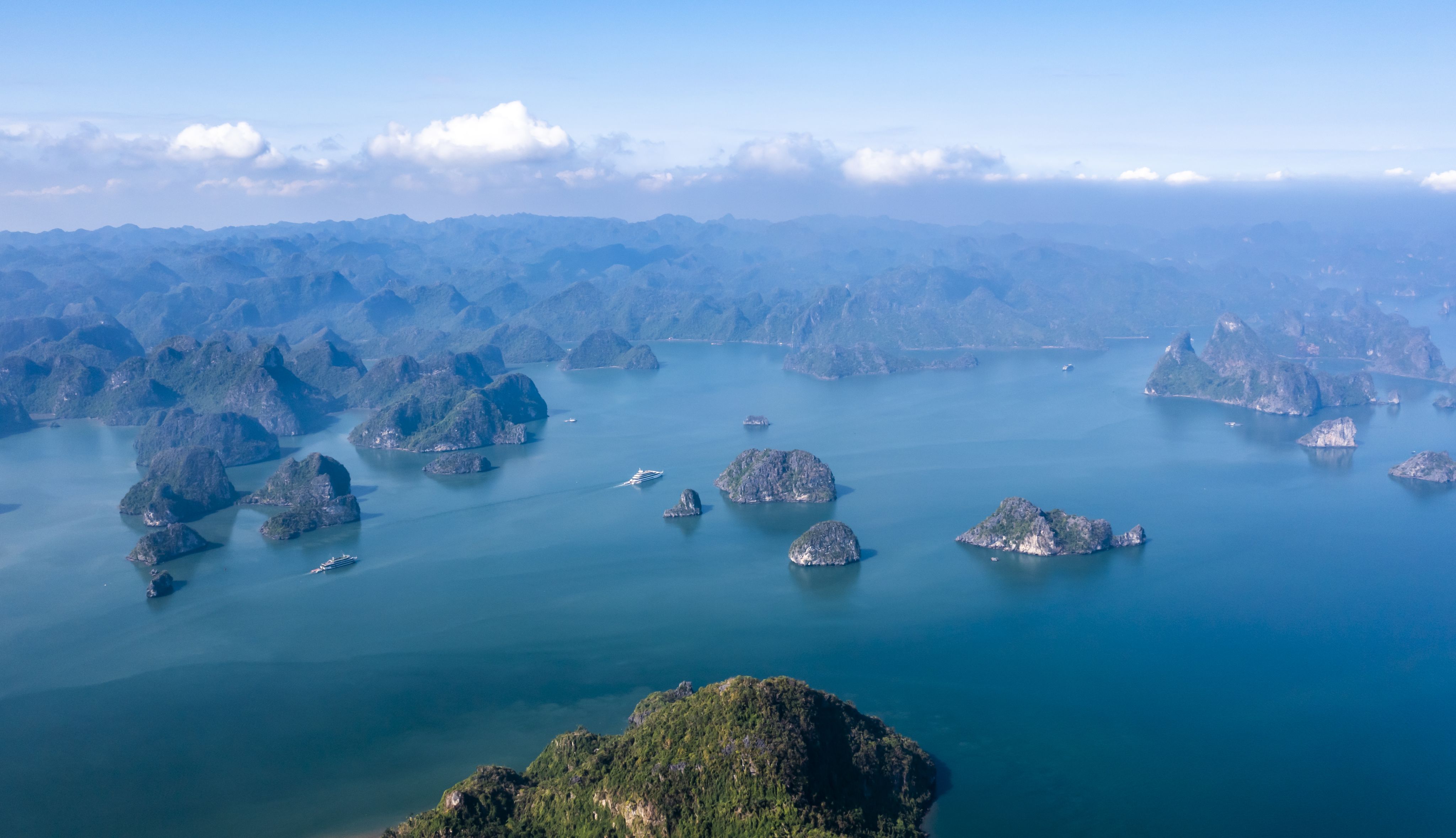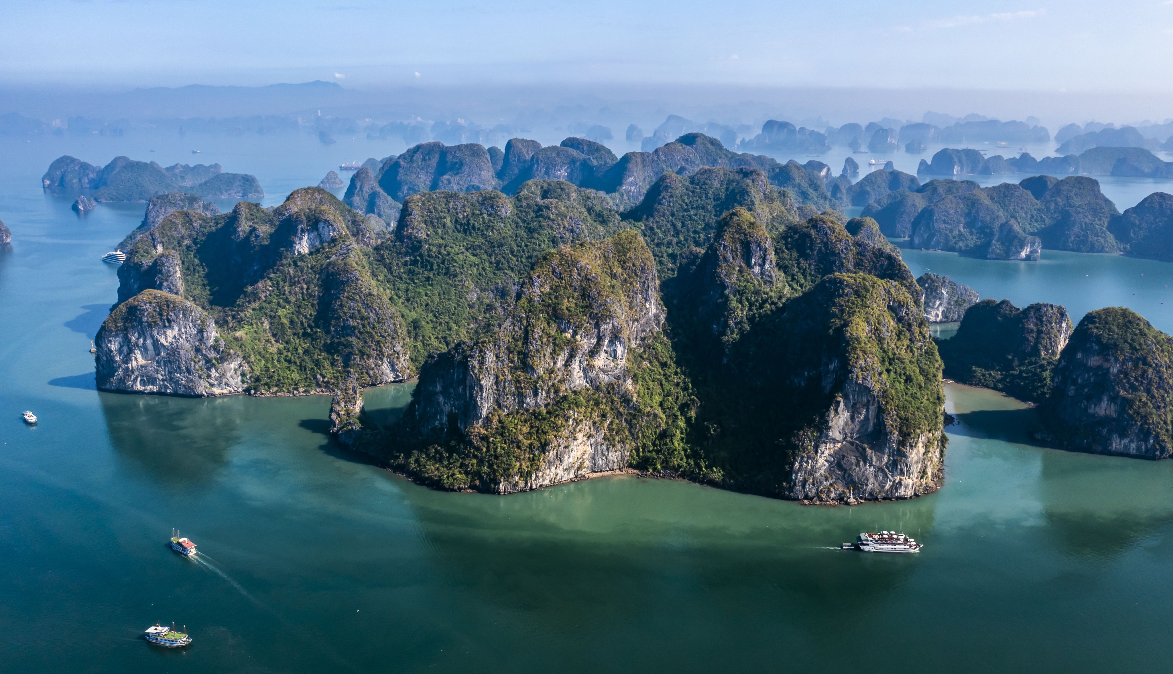 This interprovincial natural heritage includes 1,133 diverse limestone islands, comprising 775 limestone islands in Ha Long Bay and 358 limestone islands in the Cat Ba Archipelago, covered with rich vegetation above emerald-coloured waters.