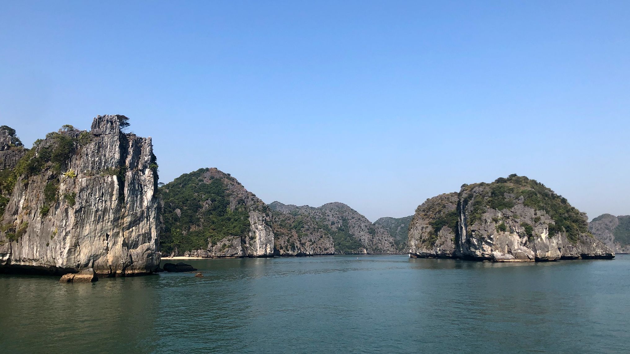 The limestone islands in Cat Ba are similar to those in Ha Long Bay.