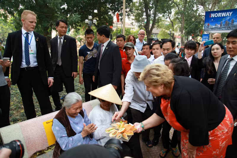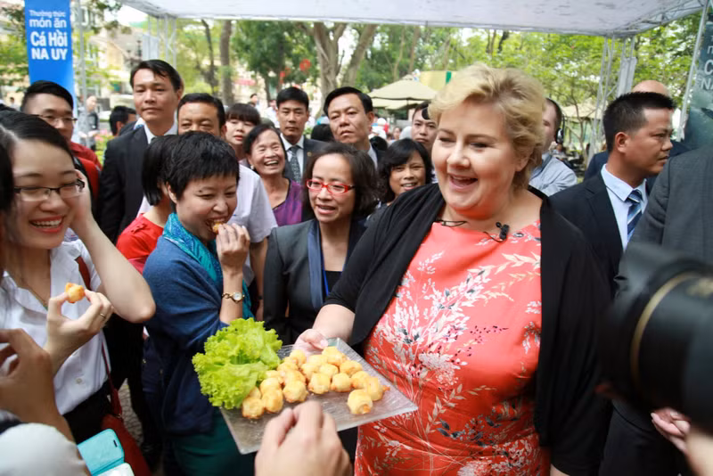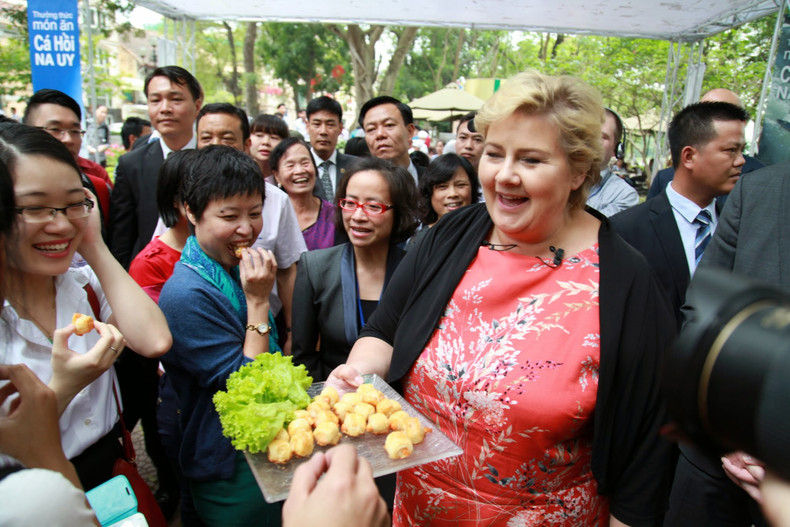 “Hanoian street food and Norwegian salmon are both world famous,” said Prime Minister Solberg