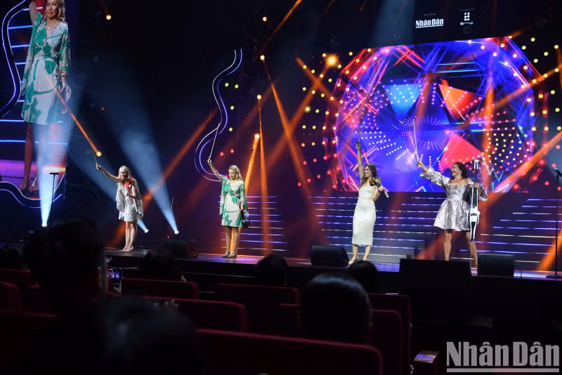 Thus, the image of the four women in Vietnamese silk Ao dai against the backdrop of the To Nu paintings left an unforgettable impression from the very start for those attending the concert at the National Convention Centre.