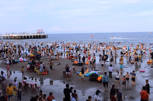 Hai Tien beach in Hoang Hoa district, Thanh Hoa province crowded with tourists during the holiday (Photo: NDO/Mai Luan)