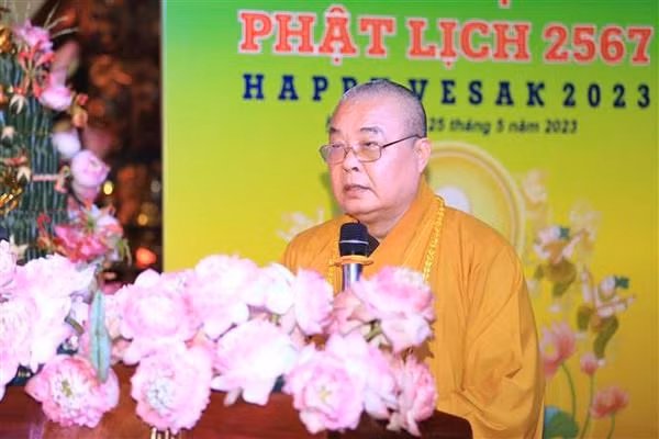 Most Venerable Thich Thanh Nhieu, Standing Vice Chairman of the VBS Executive Council addresses the event. (Photo: VNA)