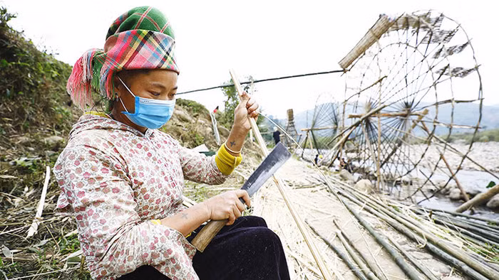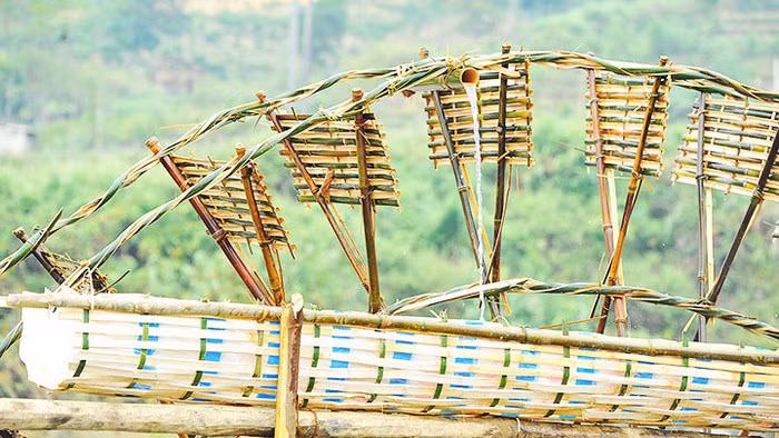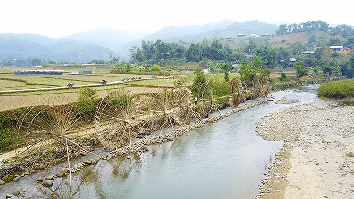 This is also a special tool to effectively support the locals in Na Khuong village, Ban Bo commune, Tam Duong district, Lai Chau province, to extract water for irrigation. The pristine beauty of the waterwheels has become a unique highlight of the north-western mountainous localities. The field in Na Khuong village, Ban Bo commune, is located higher than the Nam Mu stream, so Thai ethnic people have made 35 waterwheels to obtain water from the lower rivers or streams.