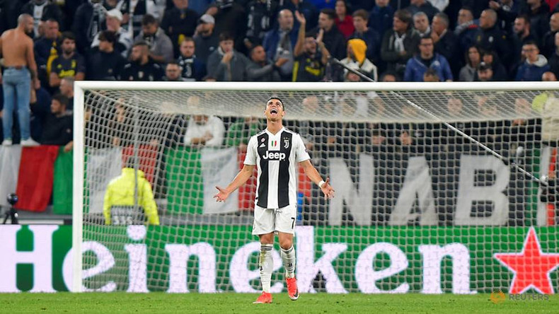 Juventus' Cristiano Ronaldo reacts after Manchester United's second goal. (Reuters)