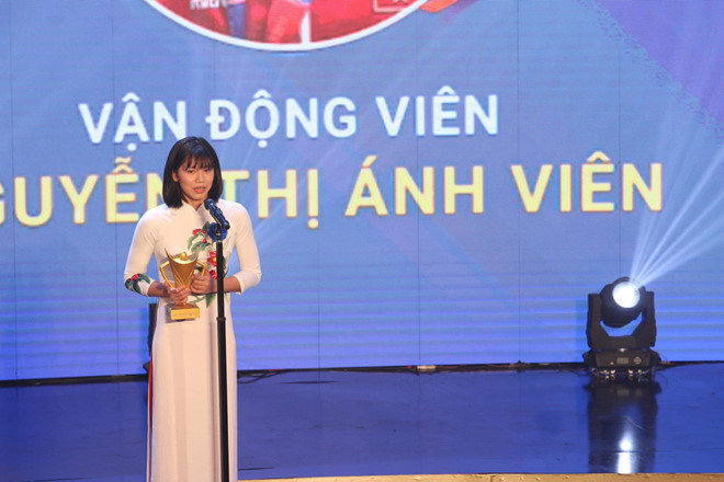 Swimmer Nguyen Thi Anh Vien wins the Player of the Year (Women) award for the third time.