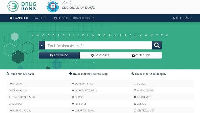 The interface of Vietnam’s first online drug bank at drugbank.vn. (Screenshot capture)