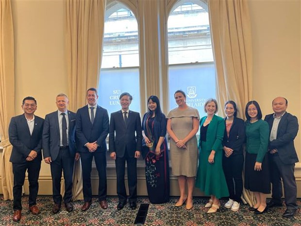 Vietnamese Ambassador Nguyen Tat Thanh (fourth from left) and representatives of education agencies and universities in South Australia. (Photo: VNA)