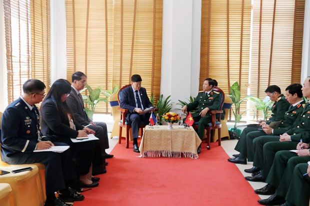 Sen. Lt. Gen. Nguyen Tan Cuong (R), Chief of the General Staff of the Vietnam People’s Army and Deputy Minister of National Defence, meets with Philippine Undersecretary of National Defence Irineo C. Espino in Luang Prabang on March 5. (Source: VNA)