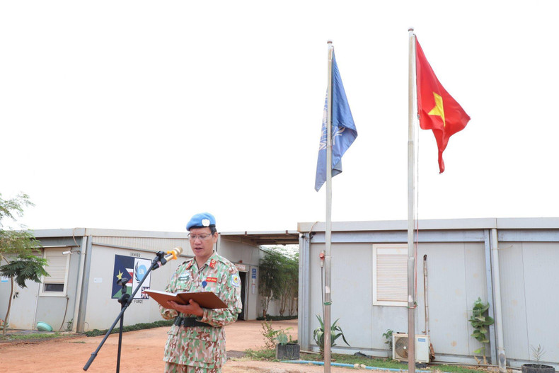 On the morning of June 6, 2022, Level-2 Field Hospital No.4 held its first flag hoisting ceremony in Bentiu, South Sudan. Lieutenant Colonel Vu Minh Duong - Commanding Officer presided over the ceremony and read reports on the hospital’s activities and plans during mission time in South Sudan.