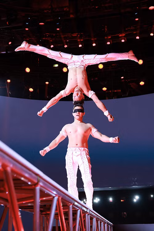During the act, the two circus artists walked the 50-cm wide and 10-m long surface in 1 minute and 55 seconds, with Giang Quoc Co being blindfolded. Notably, during training before setting the new record, the Giang brothers failed three times.