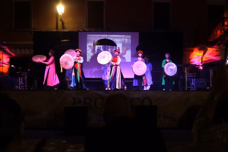 Members of the Vietnam-Italy Cultural Bridge Association made Vietnamese dishes at the festival. They also wore traditional costumes to participate in a parade there and performed lion dance and "quan ho" (duet singing), a traditional singing genre of the country.