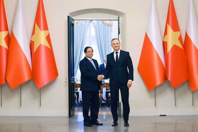 President Duda spoke highly of the official visit of PM Chinh and the high-ranking delegation of the Vietnamese Government as the two countries are celebrating the 75th founding anniversary of diplomatic relations (1950-2025). He believed that the visit to Poland by a Vietnamese PM after many years will create a turning point to further promote the Poland - Vietnam Comprehensive Partnership. The President highly evaluated Vietnam's role in the Asia-Pacific region.